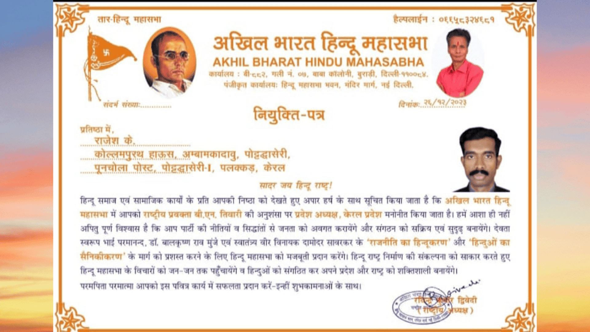 1909-ൽ "Muslim League" എന്ന മുസ്ലിം രാഷ്ട്രീയസംഘടന രൂപീകരിച്ചപ്പോൾ അതിന്റെ പാരലലായി ഹിന്ദുക്കളുടെ അവകാശങ്ങൾ സംരക്ഷിക്കാൻ വേണ്ടിയാണ് ഹിന്ദു മഹാസഭ രൂപം കൊണ്ടത്.ഹിന്ദു മതത്തിന്റെയും സംസ്കാരത്തിന്റെയും സംരക്ഷണവും വികസനവുമാണ് ഇതിന്റെ പ്രാഥമിക ലക്ഷ്യം. ഹിന്ദു മഹാസഭയുടെ ഏറ്റവും പ്രസിദ്ധനായ നേതാവാണ് വീർ സാവർക്കർ (Vinayak Damodar Savarkar). അദ്ദേഹം “ഹിന്ദുത്വം” എന്ന ആശയം ആദ്യമായി രാഷ്ട്രീയ ചിന്താഗതിയായി പരിഗണിച്ചു. സാവർക്കർ 1937 മുതൽ 1943 വരെ മഹാസഭയുടെ അധ്യക്ഷനായിരുന്നു.ഹിന്ദു മഹാസഭ "Akhand Bharat" അഥവാ വിശാല ഭാരതം എന്ന ആശയം ഉന്നയിച്ചു.